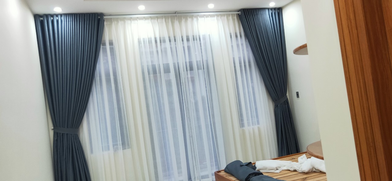 Rèm vải 2 lớp: Sang trọng, cản sáng tốt, dễ phối màu nội thất.
